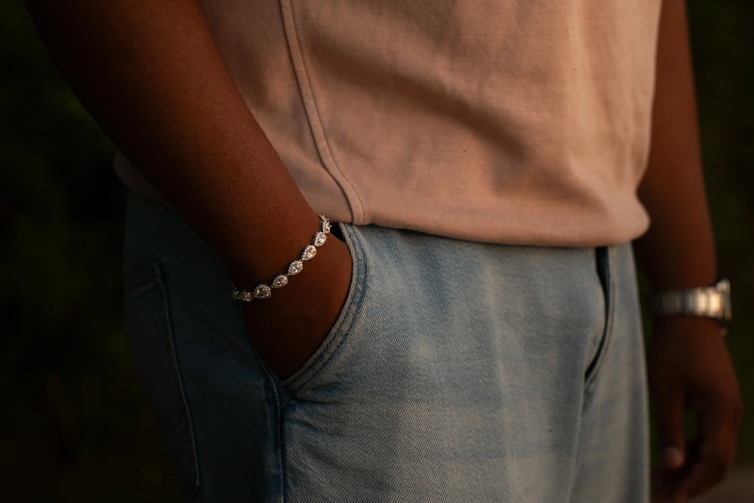 A timeless bracelet featuring a refined teardrop silhouette, fully set with brilliant zircon stones. Designed to elevate any look with effortless elegance.